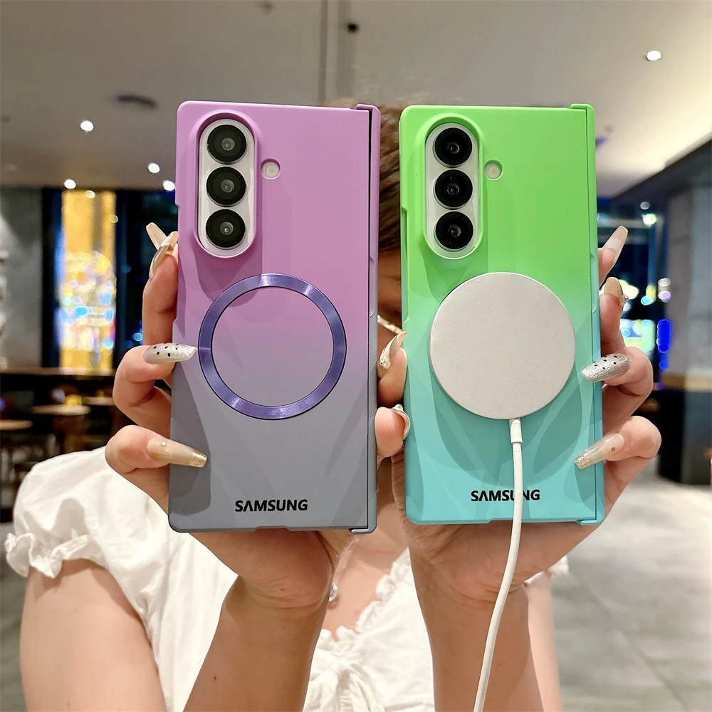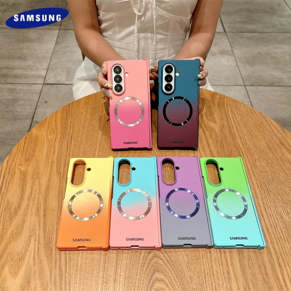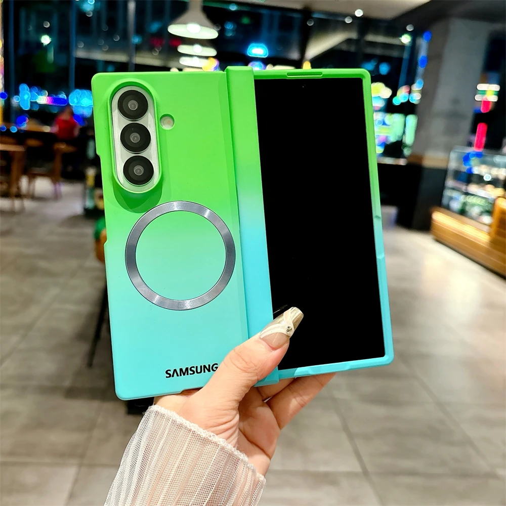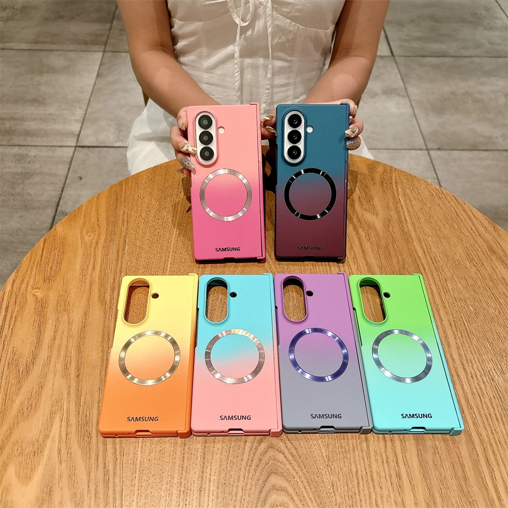 Soft Liquid Silicone Gradient Magnetic Case for Samsung Galaxy Z Fold 7 6 5 4 Zfold3 Case For Magsafe Charging Shockproof Cover