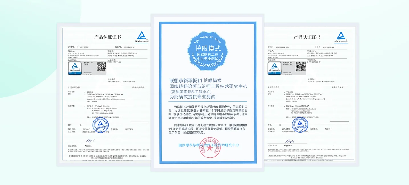 The Xiaoxin Tablet 11 has passed the TUV Rheinland hardware-level low blue light and flicker-free certification * and has been professionally tested by the National Ophthalmology Engineering Center *, providing all-round protection for the eye health of every family member