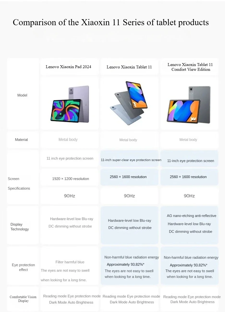 The Xiaoxin Tablet 11 reduces harmful blue light from its light source. The proportion of non-harmful blue light radiation energy is approximately 93.82%, effectively alleviating eye fatigue caused by prolonged viewing